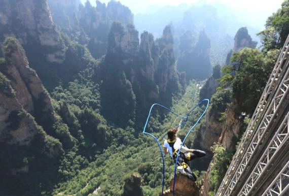 張家界,是湖南一個著名的風景區(qū),一座天然的森林公園。黃石寨、天子山、金鞭溪等勝境,是令游人心馳神往之地。在我們出發(fā)之初,心就早已高高飛揚,五個多小時的顛簸終于把我們載到了目的地,導游是一個年輕的女孩子,一見面就放開歌喉唱了首當?shù)赝良易宓母柚{,歌聲婉轉動聽,一下子讓我們領略到了鄉(xiāng)村